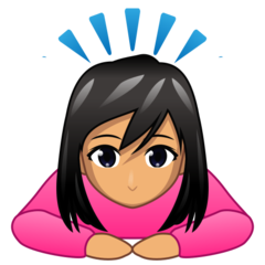 | Emodži | 🙇🏽♀️ |